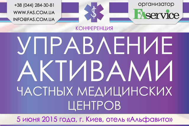 Разрешите Вас проинформировать, что в продолжение цикла успешных мероприятий для медицинских учреждений, 5 июня 2015 г. в Киеве компанией «ФА-Сервис» будет проведена конференция «Управление активами частных медицинских центров».